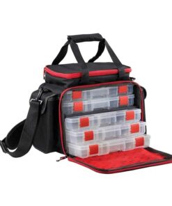 Abu Garcia Large Lure Bag är en stor fiskeväska som innehåller totalt 7 betesboxar. Fem mediumstora och två mindre. Väskan har en justerbar och bred axelrem och två bärhandtag. Två stora sidofickor rymmer småboxarna och i locket finns ett fack för verktyg och annan utrustning. I väskans huvudfack finns en avdelare som gör att du kan plocka ur två eller tre av tackelboxarna och använda utrymmet till kamera, mat eller vad du vill. Alla dragkedjor är av rejäl kvalitet och botten på väskan är förstärkt och vattentät. En riktigt fin väska framför allt för den båtburne fiskaren.