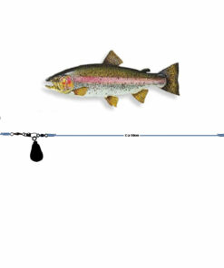 Av fluorocarbonlina, med trekrok i ena änden och ett lekande i andra änden. Längd c:a 50cm