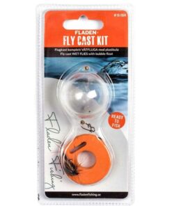 Flugkast med flytkula och torrflugor är ett komplett tackel med tre flugor för fiske med vanligt kastspö. Fyll plastkulan med vatten. Ju mer du fyller ju tyngre blir den.