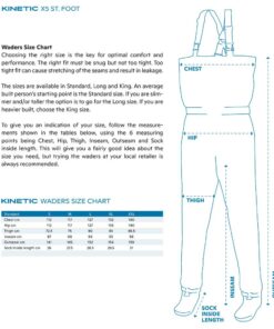 Kinetic X5 vadarbyxa med neoprenfot är byggda för att hålla dig torr och bekväm hela dagen i vattnet. Dessa vadare är extremt andningsbara och tillverkade av 5 lager vattentät polyester i kombination med PROxTEX-membran. Tejpade, limmade och sydda sömmar hindrar vatten från att sippra in. Förstärkta knän skyddar mot slitage när du går genom buskar/sly och knäböjer på stranden. Fasta grusskydd håller skräp och grus borta från dina kängor. Helt justerbara hängslen och ett medföljande vadarbälte ger en utmärkt anpassad passform. Tejpade neoprenfötter.