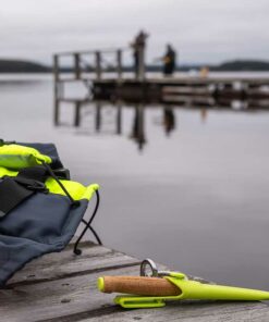 Kniven som flyter med hjälp av sitt naturliga korkhandtag väger endast 49 gram och har ett 1,4 mm tunt blad av rostfritt stål. Den limegröna färgen är väl synlig i vatten vilket gör att du enkelt kan lokalisera och plocka upp din kniv. Tack vare knivslidans bältes-clip fäster du den enkelt i bältet eller på flytvästen. Knivslidan kan även fästas vid dina arbetskläders verktygsknappar och knivslidans knapp ger dessutom möjlighet att fästa ytterligare knivar ur vårt hantverkssortiment vid varandra, så att du fritt kan kombinera ihop de knivar som passar just dig bäst.