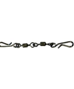 Kedjan består av 2st beteslås av snabbmodell. Vilket betyder att du behöver inte öppna låset utan endast klicka i kroken eller pirken. Detta gör att det går väldigt snabbt att byta till en annan krok eller annan pirk.
